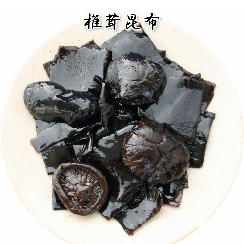 【原材料名】昆布(国産)、醤油、還元水飴、椎茸(国産)、発酵調味料、砂糖、醸造酢、風味調味料(かつお)、寒天、食塩、/ 調味料(アミノ酸等)、保存料(ソルビン酸K)、(一部に小麦・乳成分・大豆を含む)