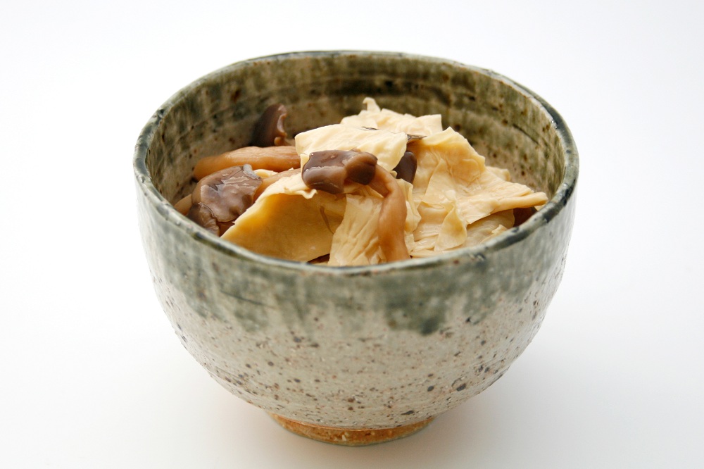 大きく切った湯葉にきのこを加え、あっさりとした味付けで炊き上げました。