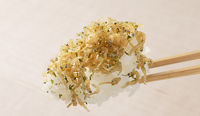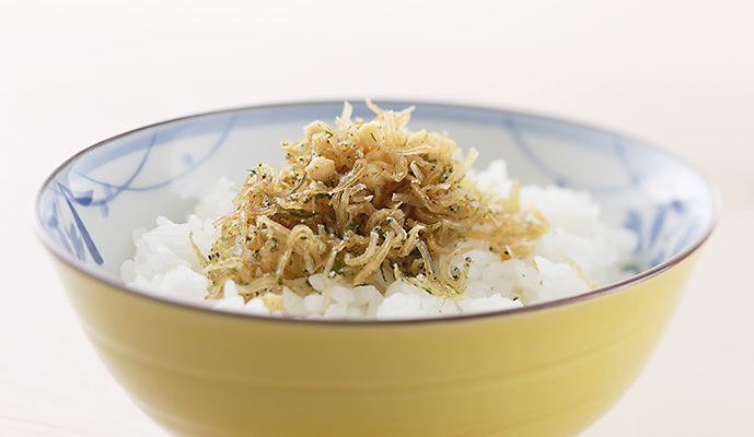 下味をつけて乾燥させたちりめんじゃこに”青のり”と”ぶぶあられ”を混ぜた