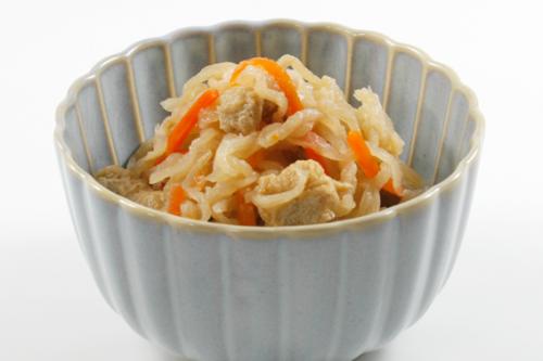 切干大根を人参、油揚げとともに炊きあわせた 薄味仕立ての 京のおばんざいです。